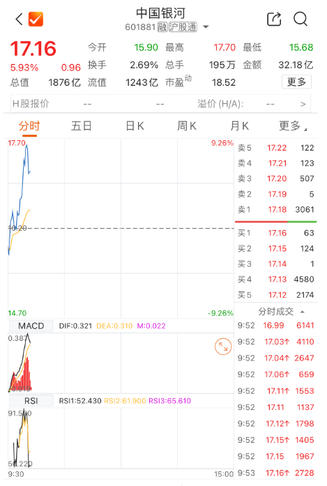 上证报中国证券网讯 2月27日,中国星河、中金公司双双低开,盘中拉升翻红,中国星河一度冲击涨停。闭幕9时54分,中国星河涨近6%,中金公司涨近3%。