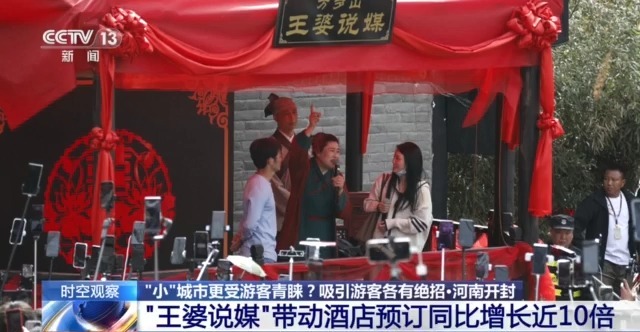 固然4月3日,“王婆说媒”场所景区河南开封万岁山大宋武侠城发布音信称,“王婆”上演者赵梅请假一个月,其间由其他演员代替。不外景区热度并未因此受到影响,景区勾搭两日门票售罄。“王婆说媒”还带动开封旅社预订量同比增长近10倍。游客不光来自相近城市,还有北京、上海、山东等地,最远的游客来自3000多公里外的新疆乌鲁木皆。假期本领,开封景区的门票预订量环比增长超3倍。