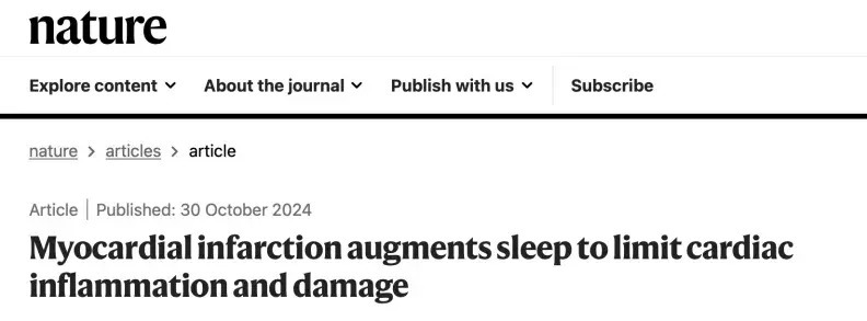 ①Huynh, P., Hoffmann, J.D., Gerhardt, T. et al. Myocardial infarction augments sleep to limit cardiac inflammation and damage. Nature (2024). https://doi.org/10.1038/s41586-024-08100-w
