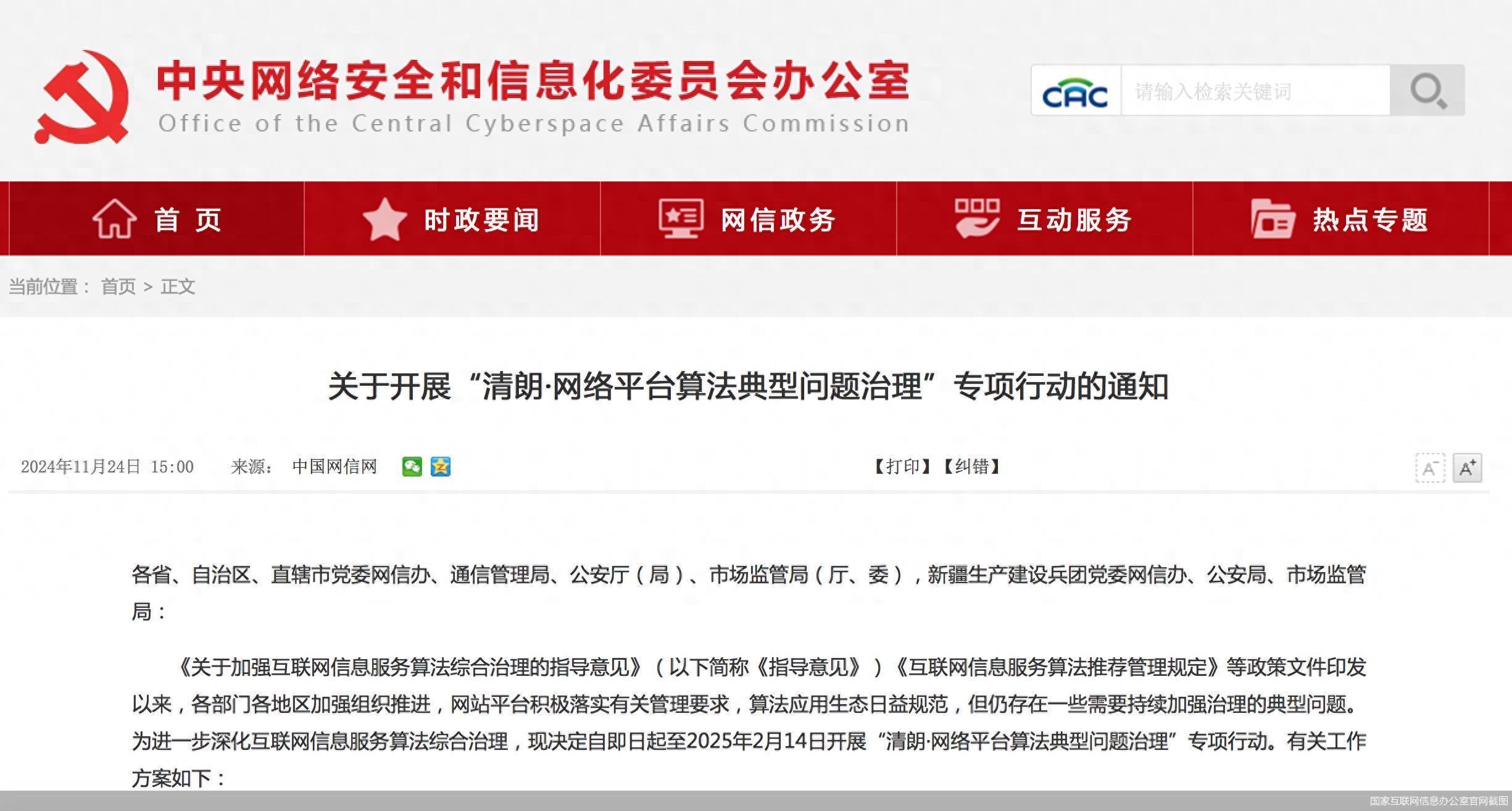 11月24日,中央蚁集安全和信息化委员会办公室书记局等四部门鸠合髻布对于开展“晴朗·蚁集平台算法典型问题科罚”专项动作的告知,决定自即日起至2025年2月14日,开展对信息茧房、热搜榜单、新办事情势工作者权利、大数据“杀熟”等六个方面的算法科罚。连络分析指出,跟着专项动作开展落实,将进一步爱戴用户正当权利,提高用户体验和惬意度;促进蚁集空间的健康、有序发展;以及鼓动技巧转换与监管并重,确保算法技巧的健康发展。此外,连续性标准有望跟上,举例,第三方机构和老到息争的评估标准可能在这次带领文献发布后迟缓完善。这需要时刻,也需要政府侧配备关连东说念主才等资源。