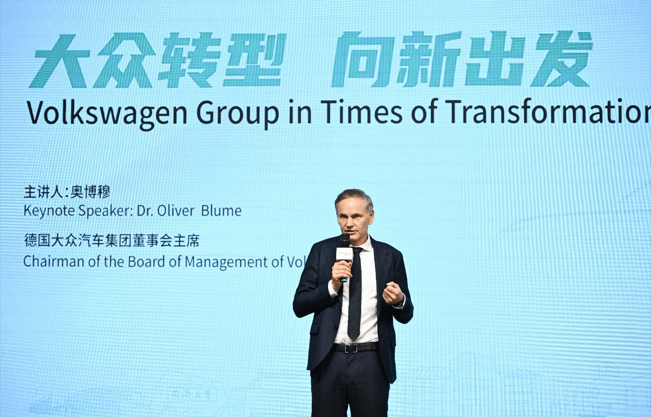 12月10日,民众汽车集团管制董事会主席奥博穆(Oliver Blume)在同济大学发饰演讲。 同济大学新闻网图